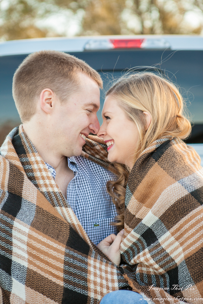 Quite possibly my favorite aspect to this shoot was the specific things that our couple brought. The wood plaque with their date on it is one they made. The darling wrap in the bed of his truck? Theirs too. but my absolute favorite is the album cover, where the simple joys are captured in the fact that their heads together make a heart. I absolutely cannot wait for the wedding, as this is going to be one for the books! Something equally to note: the more fun you are willing to have on your shoot, the more likely we are to get images that show your joy, your love, and your laughter naturally. Alyson and John joked, laughed, and cut up throughout the shoot. We tried things that sounded like they would look good and to our amazement some really did. Others were the fodder for the next really good laugh. Moral to the story? Forget the camera is there, and be silly. Be in love. And most of all, enjoy!
