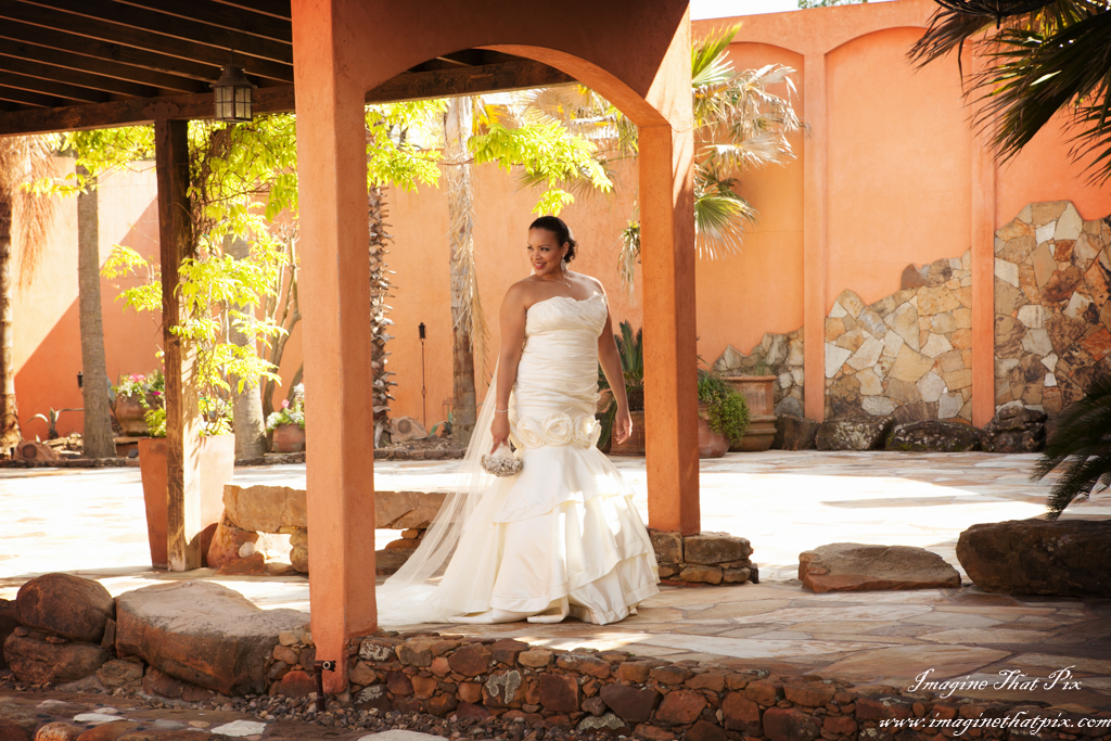 Genet and I have known one another for decades. Yes, decades as in plural. I was delighted to stand by her in her wedding. So, in speaking with with Agave Estates about featuring them on our site, Genet was the very first person I thought of as a model for this styled shoot. Genet donned her custom mermaid dress for a more chic approach to the session. Her original broach bouquet completed the high class feel of her bridal set. I wanted to show how multi-faceted the Estates are. Genet’s high society class perfectly showcases the more elegant, chic side of Agave Real in her bridals. Shea of Pinkosmetics provided our professional makeup and truly brought out the natural beauty of both our lovely ladies for the shoot.