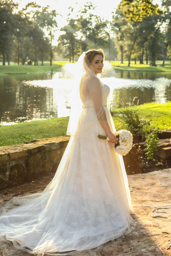Just North of  Houston is a gorgeous place to check out for those wanting rustic elegance with city access. In the heart of Magnolia, Texas lies Balmorhea, a sprawling acreage with stone-paved buildings. It has an old chateau feel, intimate, with a small bridge crossing the lake, and a fountain that reflects the sun at sunset in a way that feels like Midas himself kissed it goodnight. The quiet out here hugs you, like a warm blanket at the hearth on a cold day. It’s not the maddening quiet of a silent office space, or empty hallways. It’s a contentment. A blissful quiet that allows one to be lost in the moment. It is here, Chelsea and David decided to tie the knot. But before we walked them down the aisle, we journeyed out to Balmorhea to take her bridal portraits.