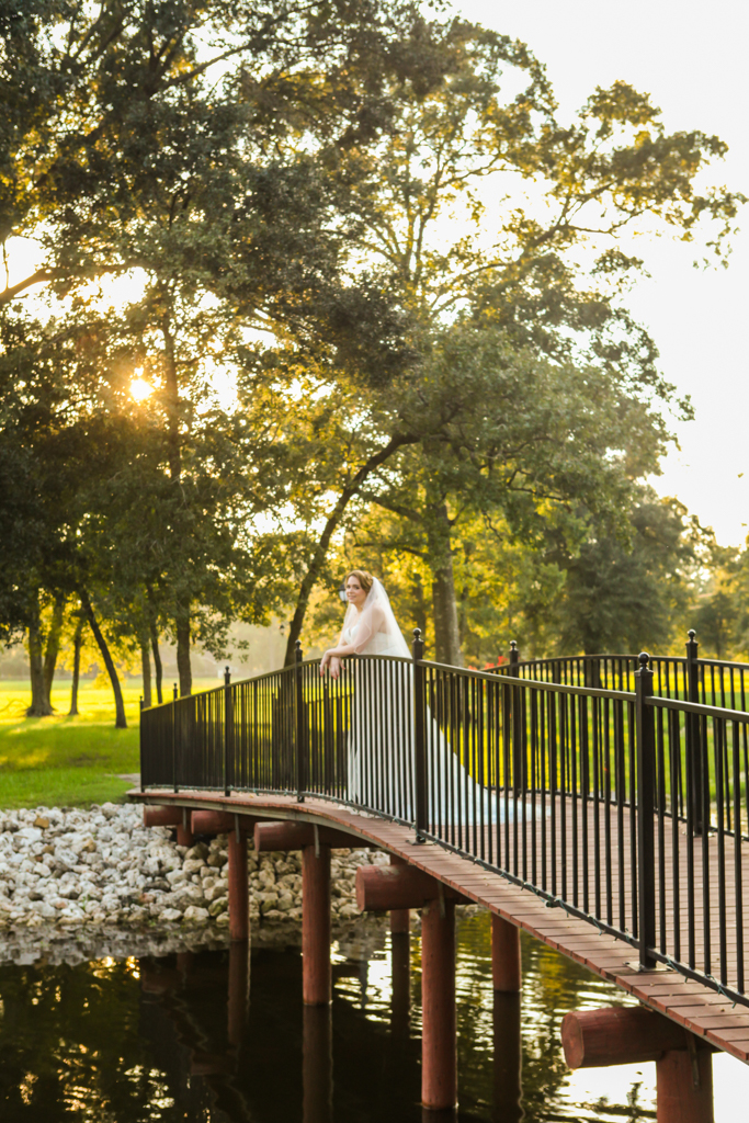 Just North of  Houston is a gorgeous place to check out for those wanting rustic elegance with city access. In the heart of Magnolia, Texas lies Balmorhea, a sprawling acreage with stone-paved buildings. It has an old chateau feel, intimate, with a small bridge crossing the lake, and a fountain that reflects the sun at sunset in a way that feels like Midas himself kissed it goodnight. The quiet out here hugs you, like a warm blanket at the hearth on a cold day. It’s not the maddening quiet of a silent office space, or empty hallways. It’s a contentment. A blissful quiet that allows one to be lost in the moment. It is here, Chelsea and David decided to tie the knot. But before we walked them down the aisle, we journeyed out to Balmorhea to take her bridal portraits.