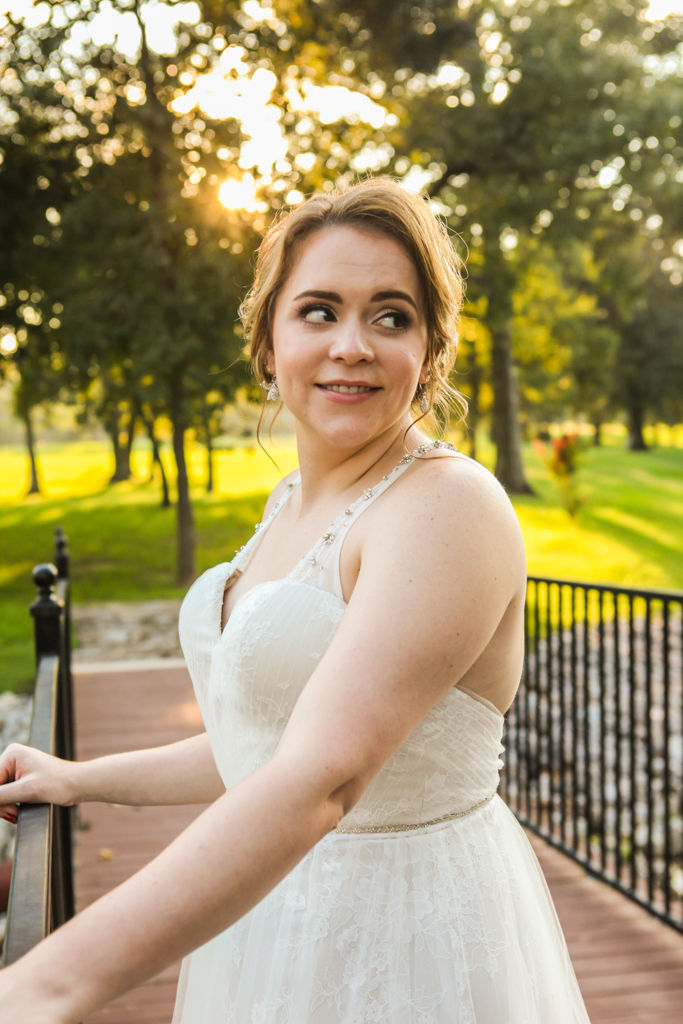 Just North of  Houston is a gorgeous place to check out for those wanting rustic elegance with city access. In the heart of Magnolia, Texas lies Balmorhea, a sprawling acreage with stone-paved buildings. It has an old chateau feel, intimate, with a small bridge crossing the lake, and a fountain that reflects the sun at sunset in a way that feels like Midas himself kissed it goodnight. The quiet out here hugs you, like a warm blanket at the hearth on a cold day. It’s not the maddening quiet of a silent office space, or empty hallways. It’s a contentment. A blissful quiet that allows one to be lost in the moment. It is here, Chelsea and David decided to tie the knot. But before we walked them down the aisle, we journeyed out to Balmorhea to take her bridal portraits.