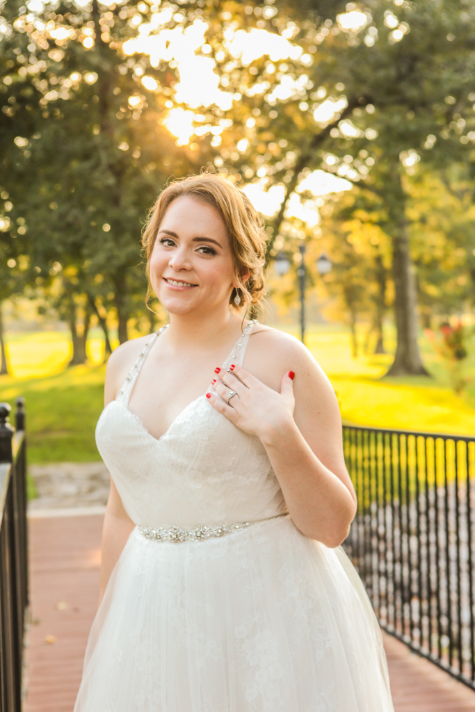 Just North of  Houston is a gorgeous place to check out for those wanting rustic elegance with city access. In the heart of Magnolia, Texas lies Balmorhea, a sprawling acreage with stone-paved buildings. It has an old chateau feel, intimate, with a small bridge crossing the lake, and a fountain that reflects the sun at sunset in a way that feels like Midas himself kissed it goodnight. The quiet out here hugs you, like a warm blanket at the hearth on a cold day. It’s not the maddening quiet of a silent office space, or empty hallways. It’s a contentment. A blissful quiet that allows one to be lost in the moment. It is here, Chelsea and David decided to tie the knot. But before we walked them down the aisle, we journeyed out to Balmorhea to take her bridal portraits.