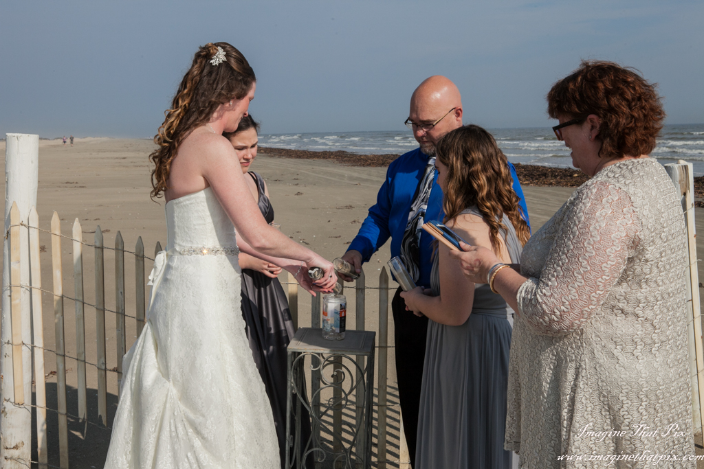 When the average wedding costs tens of thousands of dollars, couples find themselves questioning at times if all the pomp and circumstance is worth it. This is most especially true, if this isn’t a first wedding. I often hear, “We did the big wedding thing already. This time, not so much.” Occasionally, I will have a couple decide to elope. They still want pictures to remember their big day, even if it isn’t so “big”. I find myself absolutely adoring these weddings, because their simplicity places so much focus on what truly matters at a wedding: each other. Enter the beach wedding. Erika and Paul did a marvelous job with their beach wedding. An officiant joined us on the beach in Galveston, Texas, and the couple was joined by their daughters. There, the 6 of us participated in a simple, elegant, and truly touching wedding.
