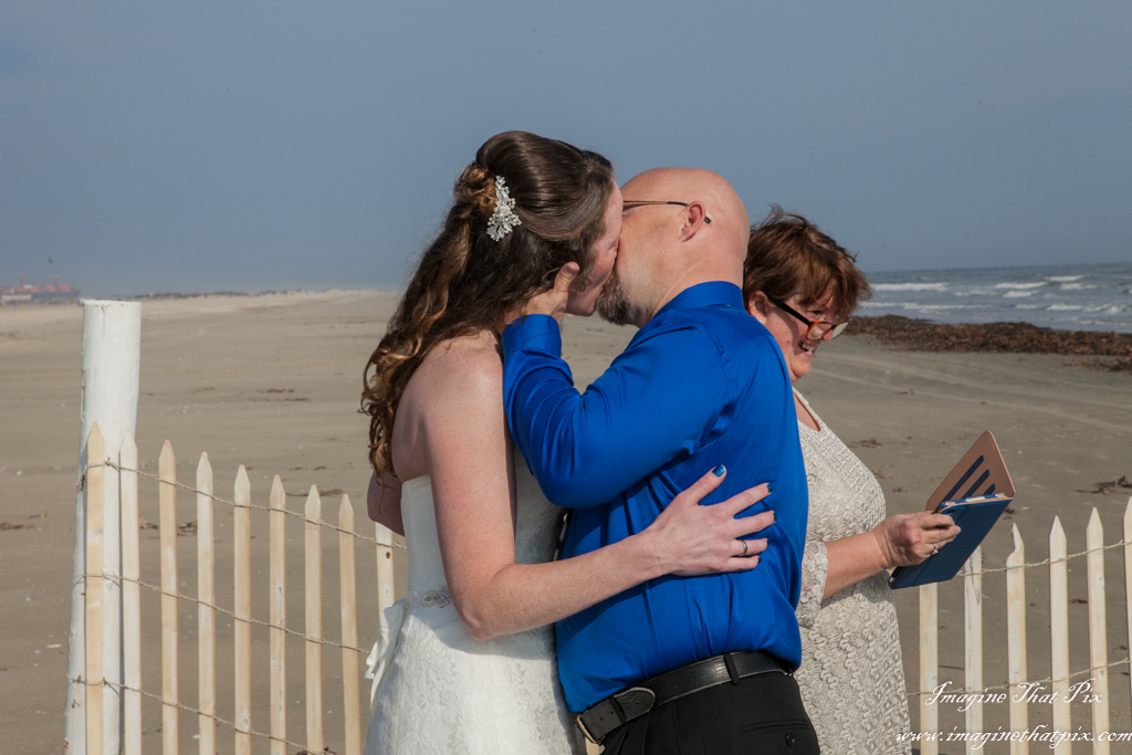 When the average wedding costs tens of thousands of dollars, couples find themselves questioning at times if all the pomp and circumstance is worth it. This is most especially true, if this isn’t a first wedding. I often hear, “We did the big wedding thing already. This time, not so much.” Occasionally, I will have a couple decide to elope. They still want pictures to remember their big day, even if it isn’t so “big”. I find myself absolutely adoring these weddings, because their simplicity places so much focus on what truly matters at a wedding: each other. Enter the beach wedding. Erika and Paul did a marvelous job with their beach wedding. An officiant joined us on the beach in Galveston, Texas, and the couple was joined by their daughters. There, the 6 of us participated in a simple, elegant, and truly touching wedding.