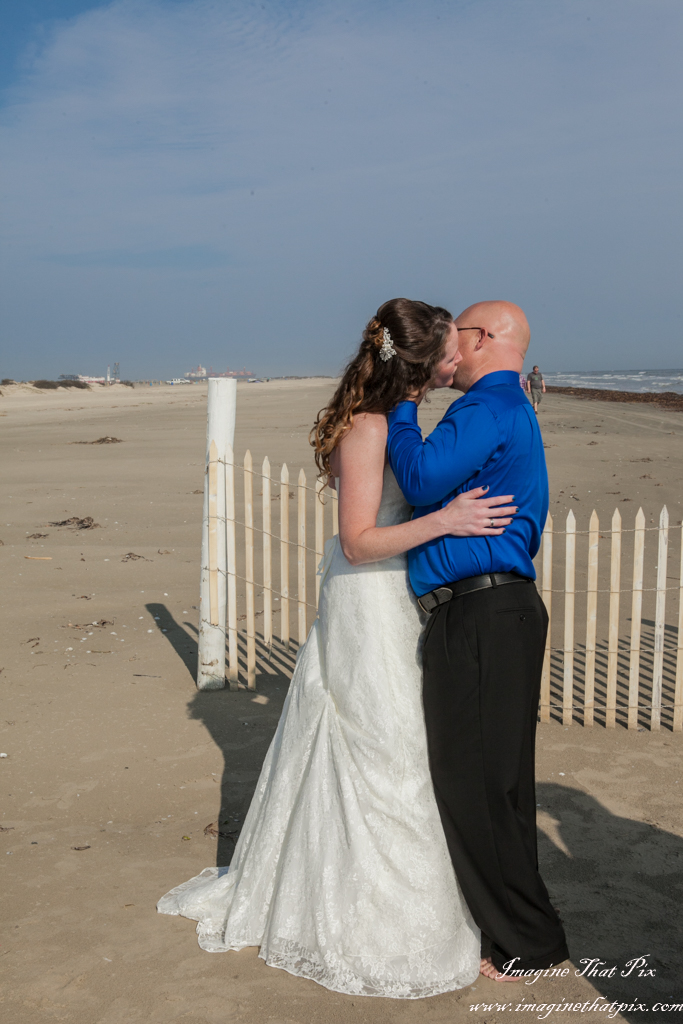 When the average wedding costs tens of thousands of dollars, couples find themselves questioning at times if all the pomp and circumstance is worth it. This is most especially true, if this isn’t a first wedding. I often hear, “We did the big wedding thing already. This time, not so much.” Occasionally, I will have a couple decide to elope. They still want pictures to remember their big day, even if it isn’t so “big”. I find myself absolutely adoring these weddings, because their simplicity places so much focus on what truly matters at a wedding: each other. Enter the beach wedding. Erika and Paul did a marvelous job with their beach wedding. An officiant joined us on the beach in Galveston, Texas, and the couple was joined by their daughters. There, the 6 of us participated in a simple, elegant, and truly touching wedding.