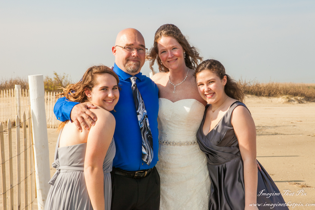 When the average wedding costs tens of thousands of dollars, couples find themselves questioning at times if all the pomp and circumstance is worth it. This is most especially true, if this isn’t a first wedding. I often hear, “We did the big wedding thing already. This time, not so much.” Occasionally, I will have a couple decide to elope. They still want pictures to remember their big day, even if it isn’t so “big”. I find myself absolutely adoring these weddings, because their simplicity places so much focus on what truly matters at a wedding: each other. Enter the beach wedding. Erika and Paul did a marvelous job with their beach wedding. An officiant joined us on the beach in Galveston, Texas, and the couple was joined by their daughters. There, the 6 of us participated in a simple, elegant, and truly touching wedding.