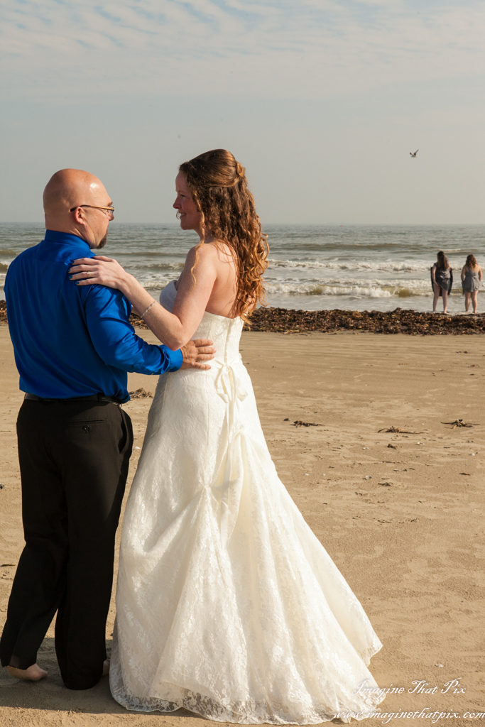 When the average wedding costs tens of thousands of dollars, couples find themselves questioning at times if all the pomp and circumstance is worth it. This is most especially true, if this isn’t a first wedding. I often hear, “We did the big wedding thing already. This time, not so much.” Occasionally, I will have a couple decide to elope. They still want pictures to remember their big day, even if it isn’t so “big”. I find myself absolutely adoring these weddings, because their simplicity places so much focus on what truly matters at a wedding: each other. Enter the beach wedding. Erika and Paul did a marvelous job with their beach wedding. An officiant joined us on the beach in Galveston, Texas, and the couple was joined by their daughters. There, the 6 of us participated in a simple, elegant, and truly touching wedding.