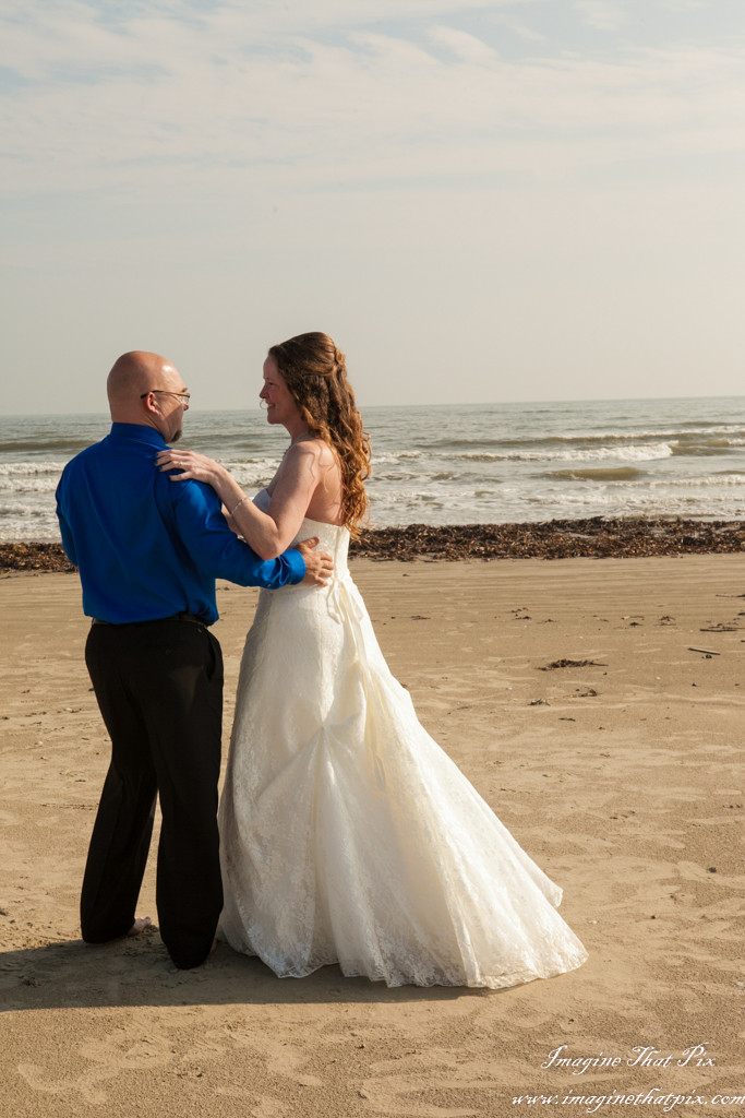 When the average wedding costs tens of thousands of dollars, couples find themselves questioning at times if all the pomp and circumstance is worth it. This is most especially true, if this isn’t a first wedding. I often hear, “We did the big wedding thing already. This time, not so much.” Occasionally, I will have a couple decide to elope. They still want pictures to remember their big day, even if it isn’t so “big”. I find myself absolutely adoring these weddings, because their simplicity places so much focus on what truly matters at a wedding: each other. Enter the beach wedding. Erika and Paul did a marvelous job with their beach wedding. An officiant joined us on the beach in Galveston, Texas, and the couple was joined by their daughters. There, the 6 of us participated in a simple, elegant, and truly touching wedding.