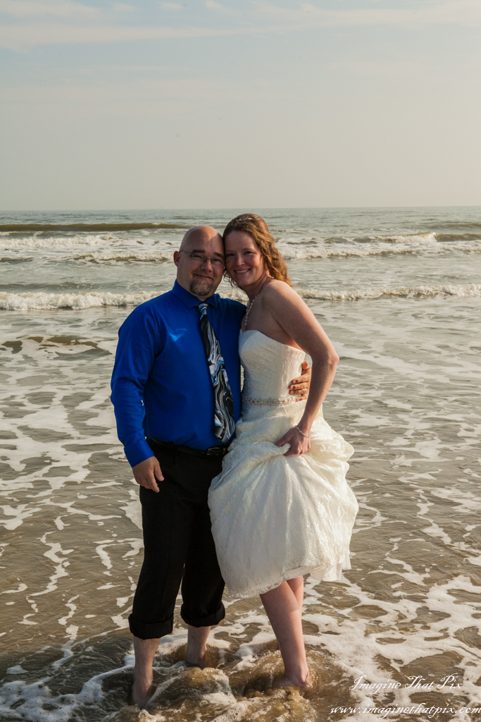 When the average wedding costs tens of thousands of dollars, couples find themselves questioning at times if all the pomp and circumstance is worth it. This is most especially true, if this isn’t a first wedding. I often hear, “We did the big wedding thing already. This time, not so much.” Occasionally, I will have a couple decide to elope. They still want pictures to remember their big day, even if it isn’t so “big”. I find myself absolutely adoring these weddings, because their simplicity places so much focus on what truly matters at a wedding: each other. Enter the beach wedding. Erika and Paul did a marvelous job with their beach wedding. An officiant joined us on the beach in Galveston, Texas, and the couple was joined by their daughters. There, the 6 of us participated in a simple, elegant, and truly touching wedding.