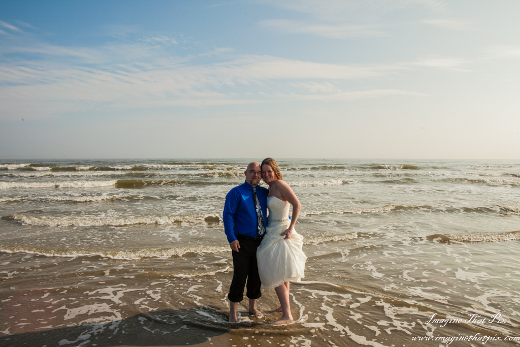 When the average wedding costs tens of thousands of dollars, couples find themselves questioning at times if all the pomp and circumstance is worth it. This is most especially true, if this isn’t a first wedding. I often hear, “We did the big wedding thing already. This time, not so much.” Occasionally, I will have a couple decide to elope. They still want pictures to remember their big day, even if it isn’t so “big”. I find myself absolutely adoring these weddings, because their simplicity places so much focus on what truly matters at a wedding: each other. Enter the beach wedding. Erika and Paul did a marvelous job with their beach wedding. An officiant joined us on the beach in Galveston, Texas, and the couple was joined by their daughters. There, the 6 of us participated in a simple, elegant, and truly touching wedding.