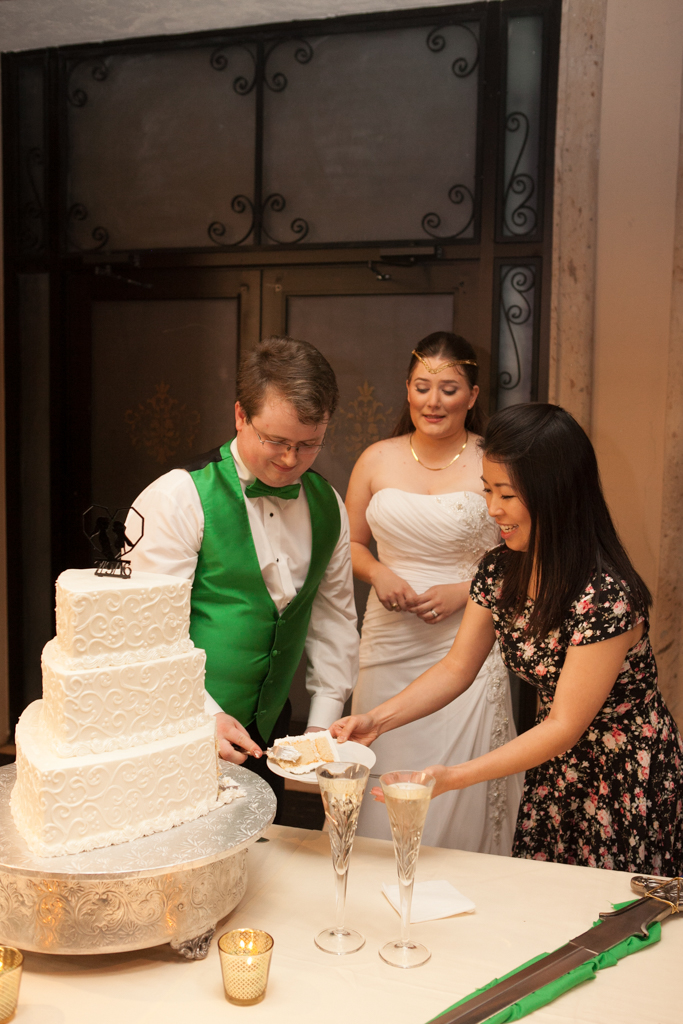 David and Kathy are literally the world’s cutest gamer couple. Meeting them was very much akin to finding a best friend you didn’t know you were missing. And listening to them both talk about their passions for gaming, comics, comicons and cosplays, made me realize that I absolutely HAD to shoot this wedding. Then they let me in on the big surprise: this wedding would be themed using elements from The Legends of Zelda. Yes, Zelda. From Rupee favors, to green uplighting, and even an incredible sword to cut the cake (an Imagine That Pix first, to be certain), they kept this formal, classy wedding fun. Classical music choices were paired seamlessly with current hits and even the Aggie War song. It remains a favorite wedding of mine!