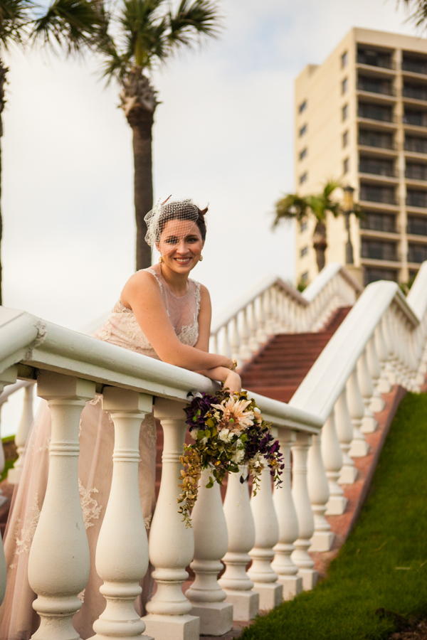 Most of you will recognize Kristin from the whimsical Galveston engagement shoot we did with the parrots. Her bridals has to top it. When an artists, adventurer, and renaissance woman gets married, the portraits can be nothing short of perfection. Kristin delivered. We started out at Historic Kempner Park in Galveston, Texas, the future wedding site for our darling couple. Next we journeyed to the San Luis Resort Hotel And Spa, for pictures with their gorgeous waterfall and rock scapes. Lastly, we drove down I45 and ended up at the last tree in a sea of oyster reefs, just in time for sunset. Kristin made her headpiece, the birdcage veil complimenting her feathers and vintage couture bridal gown. The feathers are from each of 4 parrots she has cared for, and her bouquet was her own creation as well. I cannot wait to show everyone the wedding, as she was one of my most liberating and artistic shoots to date. Quite the joy to work with, and her mom is the kind of Mother – of – the- Bride that brings absolute joy and magic to the shoot. I absolutely loved that she knew exactly how involved to be, without overpowering her daughter. You could tell she took pride in watching her daughter beaming, and celebrated these moments just like we did.