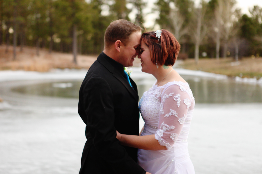 Nestled amongst the trees of Fox Run Park in Colorado Springs, Colorado, lies a small, rustic gazebo. It overlooks a lake that, during the winter months, freezes over. The picturesque backdrop is nothing short of log cabin idyllic and made for a intimate ceremony and a fantastic photoshoot! Ryann and Jon are one of those fun loving couples that have a party wherever they go. Their contagious joy made for fantastic pictures, and the backdrop of snow and frozen lake made the charm of this location even better. Don’t take my word for it though. The pictures don’t do it justice!