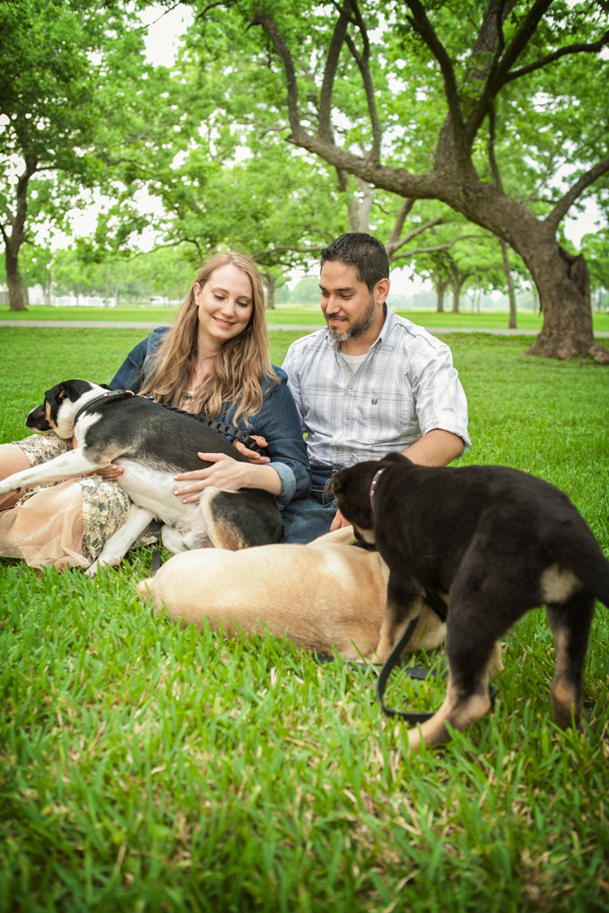 Fast forward, and a couple pups later, engagement pictures were needed. I was ready. Boy, was I ready! Shane and Megan selected the Orchard at Caney Creek as their venue. The fabulous folks out there let us come out for a fantastic engagement session, complete with the couple’s fur children: Porter, Oats and baby Citra. Now, before you think I am some kind of wizard, I am not. I did, however, pack a full ziplock of treats, and sat them all facing a pasture of cows, to attract the pups’ attention. The primary shot? One single frame. No cutting and pasting. But seriously, how can you not love this crew? Enjoy!!